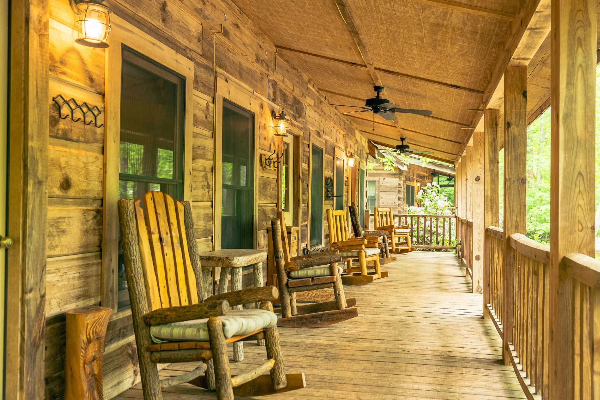 The main cabin has 3 suite rooms under one roof with separate entry to each. They share a common full length front porch that overlooks the river and have individual back entry doors.